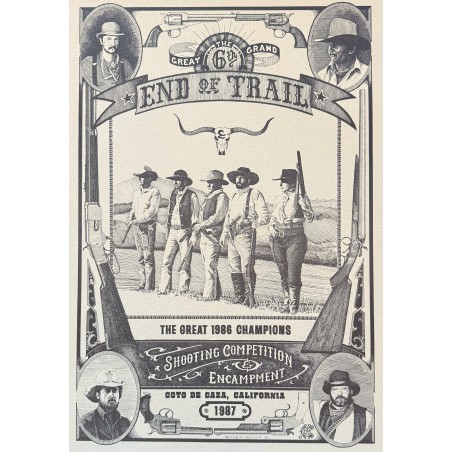 This awesome 13" x 19" poster print is ready for framing! Take a walk into the history of EOT and add this unique poster from END of TRAIL 1987 to your collection. Available in limited quantities and for a limited time.