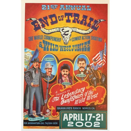 This awesome 13" x 19" poster print is ready for framing! Take a walk into the history of EOT and add this unique poster from END of TRAIL 2002 to your collection. Available in limited quantities and for a limited time.