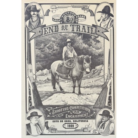 This awesome 13" x 19" poster print is ready for framing! Take a walk into the history of EOT and add this unique poster from END of TRAIL 1989 to your collection. Available in limited quantities and for a limited time.